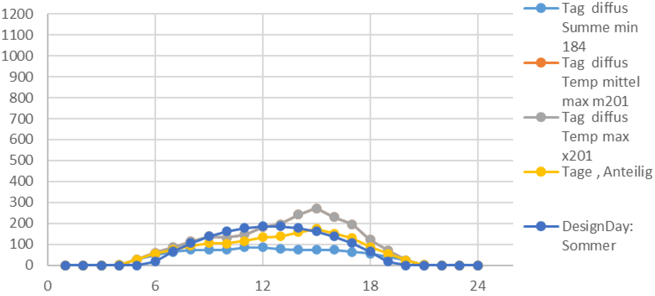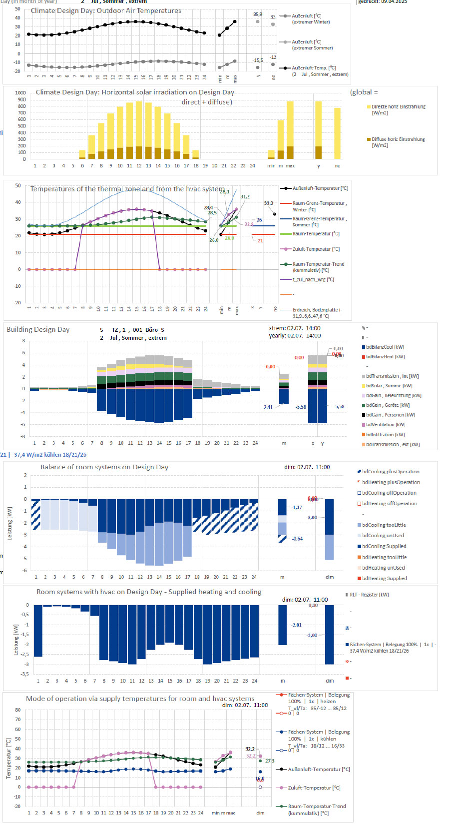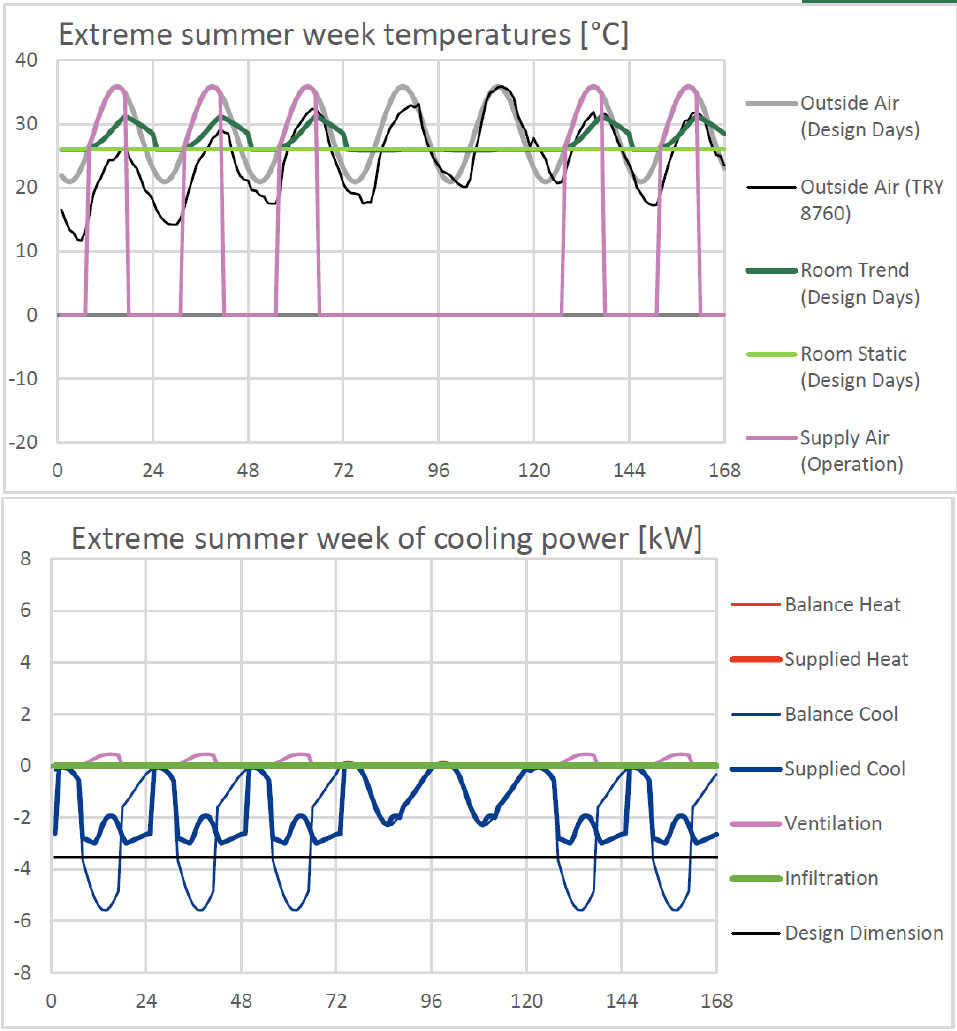 Der extreme Sommertag (Climate Design Day Sommer) dient zur Dimensionierung der Kühlleistung.
