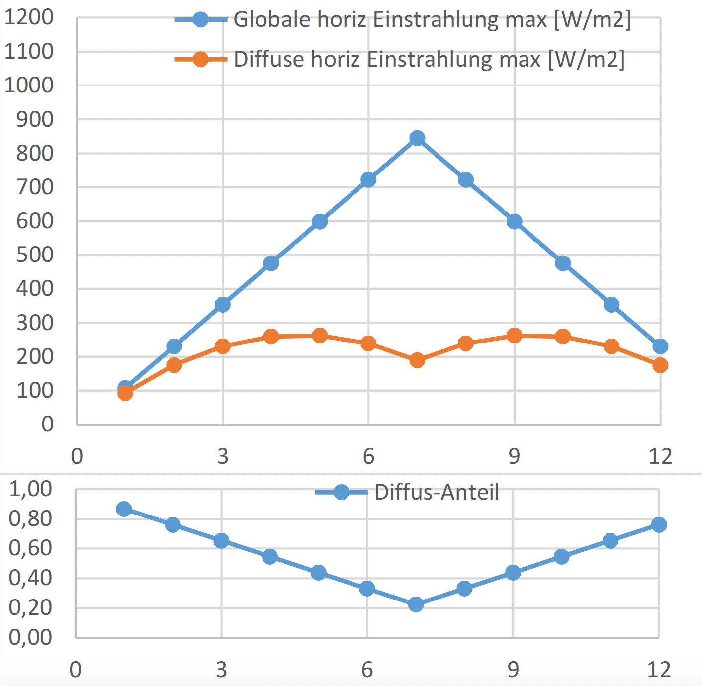Werte für Solarstrahlungsdaten angeben (in W/m²) _ nicht die Außentemperaturen